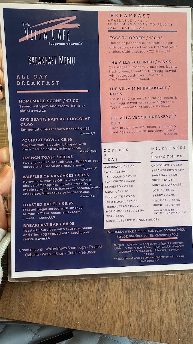 Speaking of the menu, The Villa Cafe offers a delightful array of breakfast options that cater to every palate. For those craving a traditional feast, the Full Irish breakfast is a must-try, highly praised by patrons like Gerard Fleming who noted its impeccable presentation and rich flavors. If you're in the mood for something sweeter, Ella Finlayson raves about the waffles drizzled with Nutella and topped with fresh fruit - a perfect balance of indulgence and freshness that leaves you wanting more. And don't overlook the pastries; according to Ben Brasic, they are truly exceptional, featuring recipes that showcase the finest local ingredients.