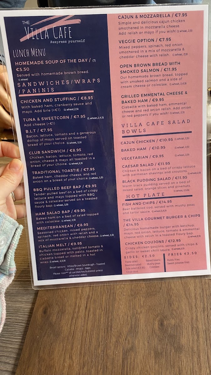 Welcome to The Villa Cafe, a delightful gem nestled on Main Street in Townparks, Birr, Co. Offaly. This charming cafe is much more than just a place to grab a quick bite; it's a haven for food lovers and a cozy spot for friends and family looking to unwind over delicious meals. Open early at 8 am, it's the perfect stop for those seeking a hearty breakfast or a leisurely brunch.